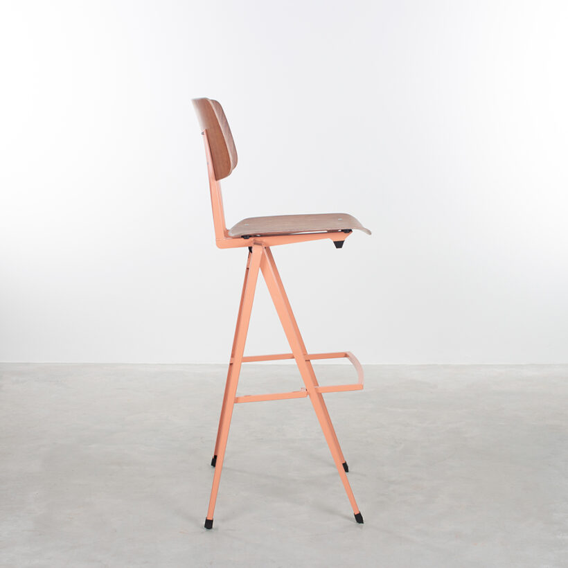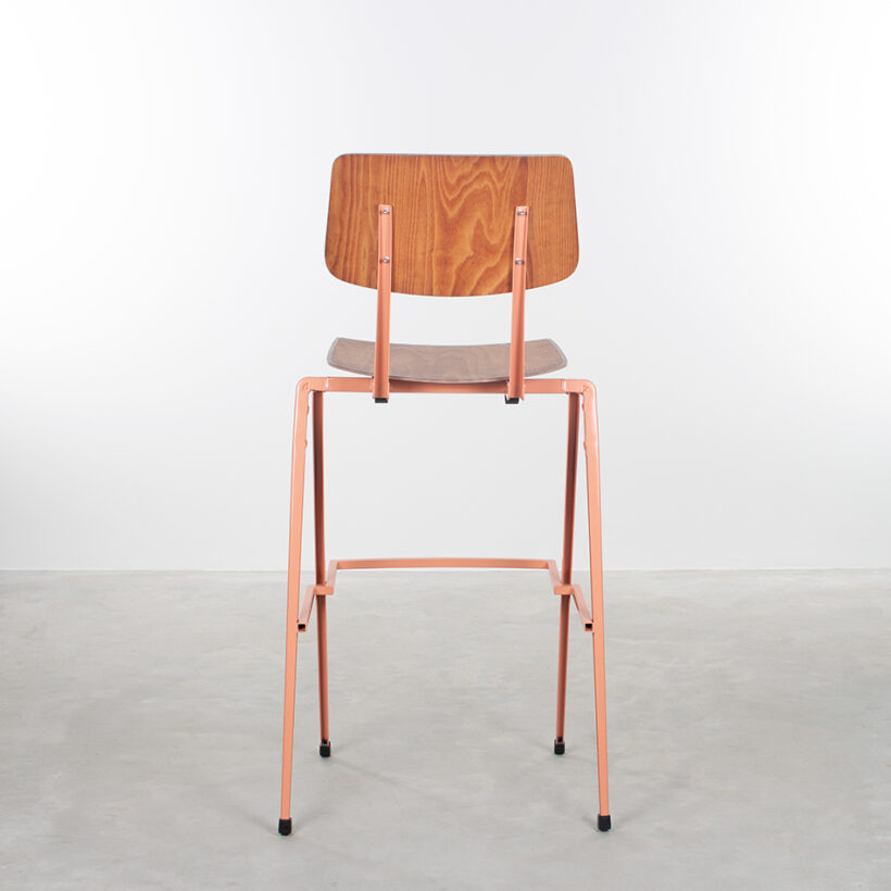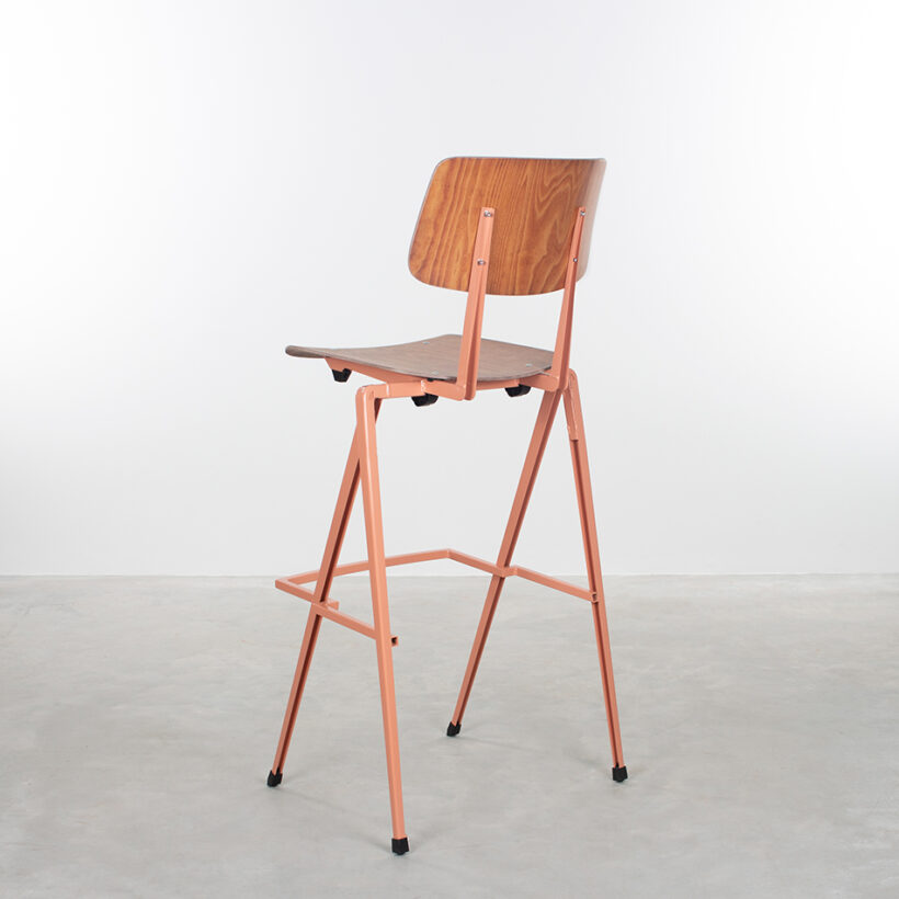 De barstoel van geperst plaatstaal geeft niet alleen de karakteristieke vorm aan de stoel maar benadrukt ook de voordelen: sterk, licht en gebruiksvriendelijk, ideaal dus voor in de horeca. Voor de zitting en rugleuning is gebruik gemaakt van pantserhout, destijds een zeer vernieuwend product dat nog altijd aan de eisen van de moderne tijd voldoet. De barstoel is ontzettend geschikt voor de wat minder gladgestreken plekken. We vinden hem niet echt romantisch, maar door het stoere uiterlijk ga je gelijk van hem houden. Met deze stoel geeft u een ruimte in een oogwenk een creatieve, alternatieve uitstraling. Met deze goedgekozen mix van nuchter industrieel ontwerp en het chique van een mooi gedekte tafel, creëert u zo de ultieme ‘urban look’.