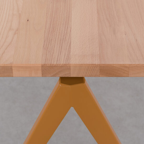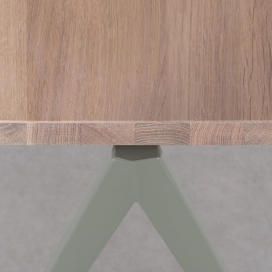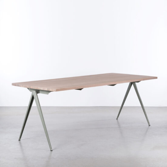 The metal frame of the TD4 table is related to that of the S16 chair, with the same clean lines and recognizable compass-shaped legs. The frame is made of folded sheet steel. An indestructible material that is light at the same time. The tabletop of the TD4 is made of solid wood. You can choose from beech, oak or walnut. The solid wood is smooth and softly finished and, therefore, has a light appearance.