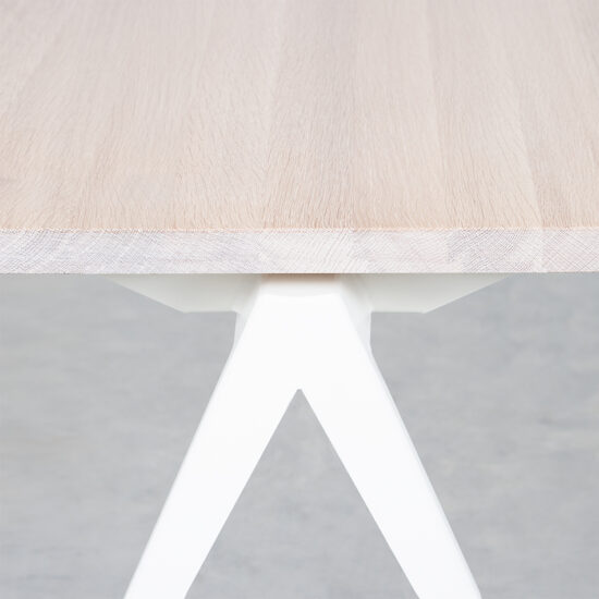 The frame of the TD4 dining table bench is made of folded sheet steel. This gives the dining table bench the distinctive character that can also be found with the TD4 table. A powder-coat gives the frame a nice colour. The wooden seat of the TD4 table is made of solid wood. You can choose from beech, oak or walnut. The solid wood is smooth and softly finished in oil or varnish and therefore has a light appearance.