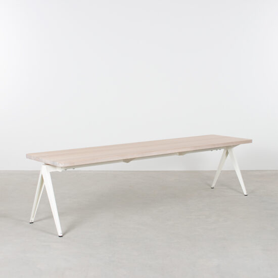 The TD4 dining table bench originated from the increasing demand for dining room benches. The dining table bench is a new design, designed by De Machinekamer and in line with the reissue of the TD4 table. The TD4 dining table bench is a special design. You may be familiar with the bench because it is based on the steel school tables from the 1960s. All elements are structurally the same as the steel school table and the design with the clean lines and characteristic compass-shaped legs have also been adopted. The iconic design is timeless, simple, sleek and functional.