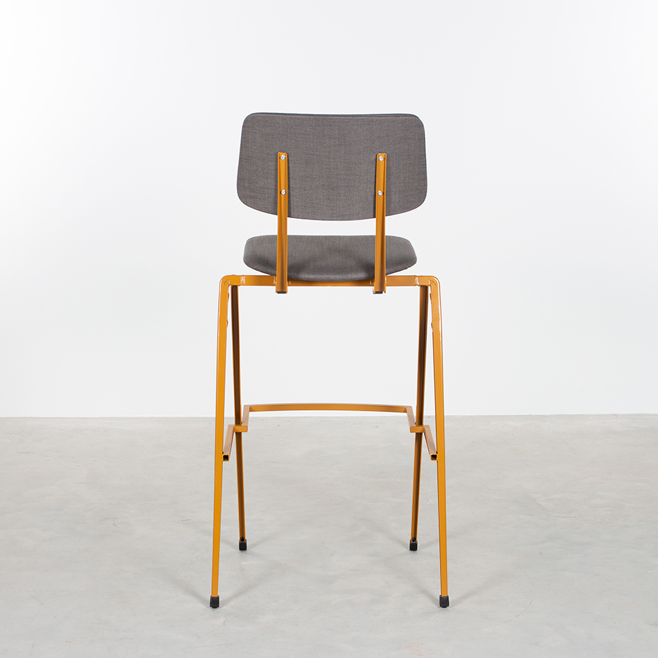 The bar chair is made of pressed steel. Not only does it give the chair its characteristic shape, but it also emphasizes the chair’s advantages: strong, light and user-friendly. This makes the bar chair ideal for the hospitality industry. When the bar chair was originally made, armoured wood was used for the seat and backrest. This was a very innovative product at the time that still meets the requirements of modern times. The bar chair is extremely suitable for the less smoothed areas. We personally don’t find the design romantic, but because of the tough appearance of the bar chair, you will immediately fall in love with it. With this chair, you instantly give a space a creative, alternative look. With a well-chosen mix of sober industrial design and the chic of a beautifully set table, you create the ultimate ‘urban look’.