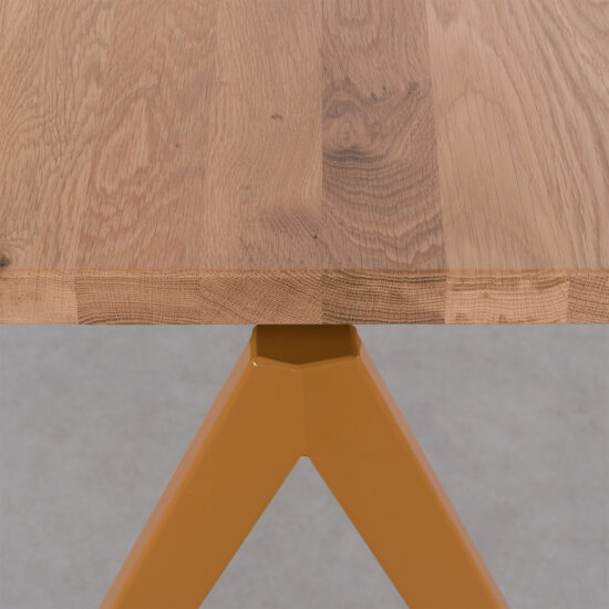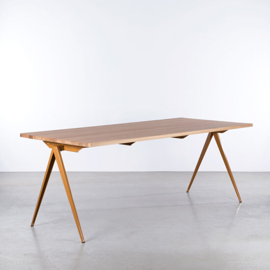 The metal frame of the TD4 table is related to that of the S16 chair, with the same clean lines and recognizable compass-shaped legs. The frame is made of folded sheet steel. An indestructible material that is light at the same time. The tabletop of the TD4 is made of solid wood. You can choose from beech, oak or walnut. The solid wood is smooth and softly finished and, therefore, has a light appearance.