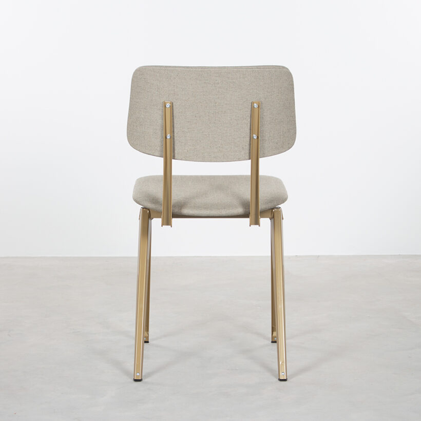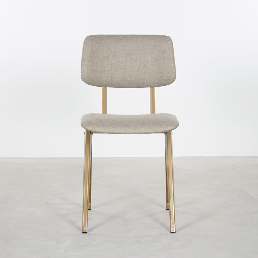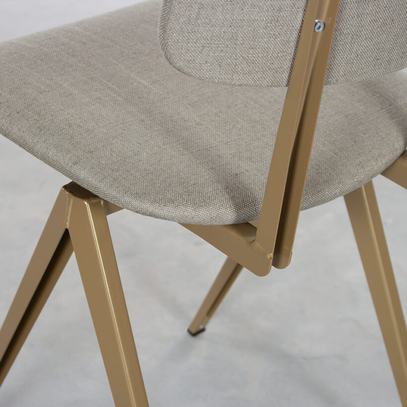 Op veler verzoek heeft De Machinekamer een meer aangeklede versie van de S16 ontwikkeld; de S16-stoel met gestoffeerde zitting en rug. Je kunt kiezen uit een volledig (rug en zitting) of deels (zitting) bekleedde stoel. Met een vulling van 2 cm dikte, is zitcomfort gegarandeerd. Het maakt de stoel bovendien geschikt voor hogere tafels. De stofkleuren hebben wij met zorg uitgezocht, passend bij de kleuren van de frames. De bekleding geeft de stoel net wat meer cachet. Ook is het mogelijk zelf een stof uit te zoeken in de winkel in Zaandam & Utrecht. Voor ieder wat wils!
