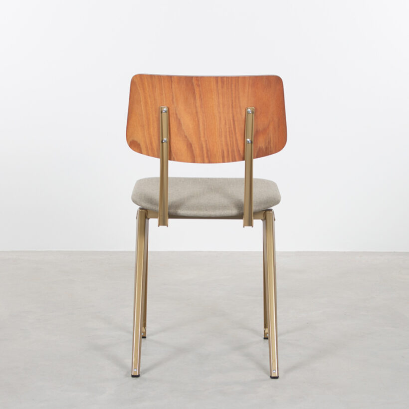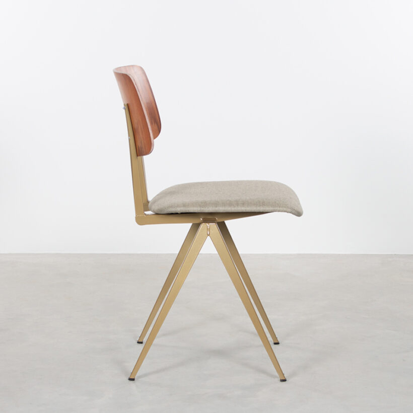 Op veler verzoek heeft De Machinekamer een meer aangeklede versie van de S16 ontwikkeld; de S16-stoel met gestoffeerde zitting en rug. Je kunt kiezen uit een volledig (rug en zitting) of deels (zitting) bekleedde stoel. Met een vulling van 2 cm dikte, is zitcomfort gegarandeerd. Het maakt de stoel bovendien geschikt voor hogere tafels. Net als bij de TD28 fauteuil gebruiken we kwaliteitsstoffen*. De stofkleuren hebben wij met zorg uitgezocht, passend bij de kleuren van de frames. De bekleding geeft de stoel net wat meer cachet. Ook is het mogelijk zelf een stof uit te zoeken in de winkel in Zaandam. Voor ieder wat wils!