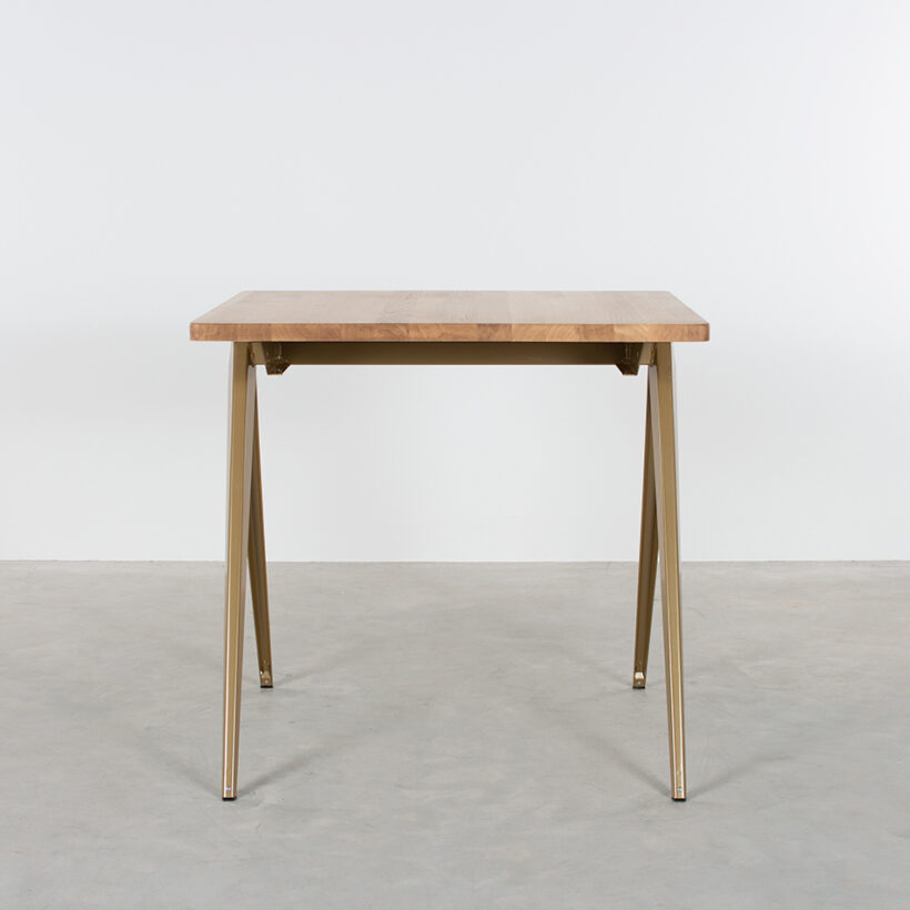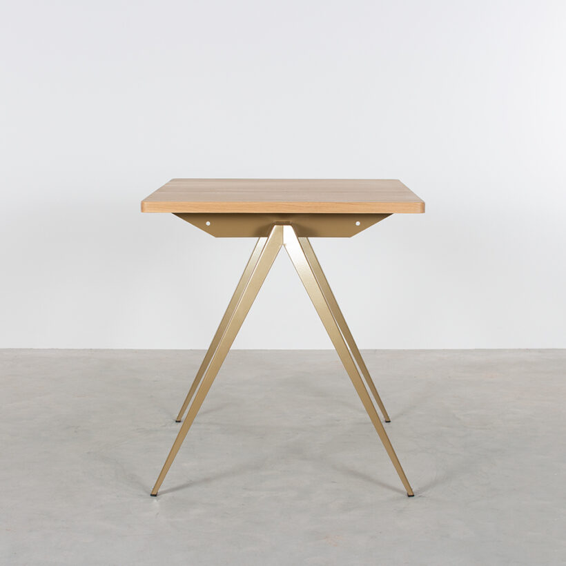De TD4 Bistro is op dezelfde manier ontworpen als de TD4 tafel. Het frame is gemaakt van gevouwen plaatstaal, gelast en afgewerkt met een poedercoating. Het gevouwen plaatstaal maakt de tafel ongelooflijk sterk, zonder dat de tafel erg zwaar wordt. De karakteristieke passervormige poten geven de TD4 Bistro een industriële uitstraling. Voor het tafelblad wordt massief beuken-, eiken- of notenhout gebruikt, zacht afgewerkt in olie of lak. Hierdoor krijgt het hout een lichte uitstraling. Het aantrekkelijke kleurenpalet geeft de bistro een modern tintje.